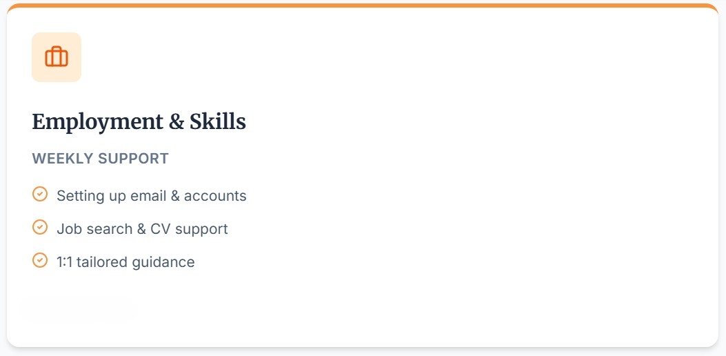 Our approach is simple: we create welcoming, low-pressure routes into learning and support—without judgement, without assumptions, and without expecting people to “already know” how systems work. We start where each person is, listen first, and offer practical help at a comfortable pace, so everyone feels respected, confident, and able to take the next step.